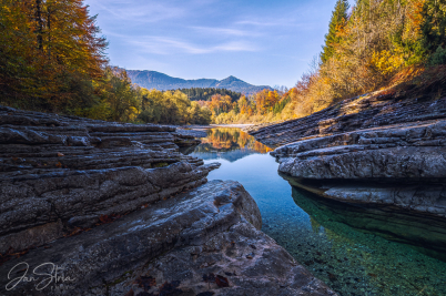 Klíčová slova: příroda, krajina, podzim, strom, stromy, voda, řeka, potok, skála, mraky, nebe, modrá, žlutá, oranžová, cestování, rakousko, canon