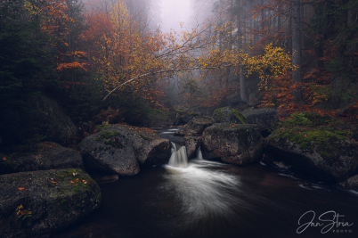 podzim, řeka, potok, voda, hory, kámen, stromy, listy, barvy, pochnurný, nálada, atmosféra, les, příroda, krajina, česká republika, canon